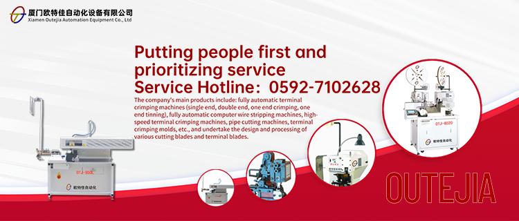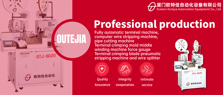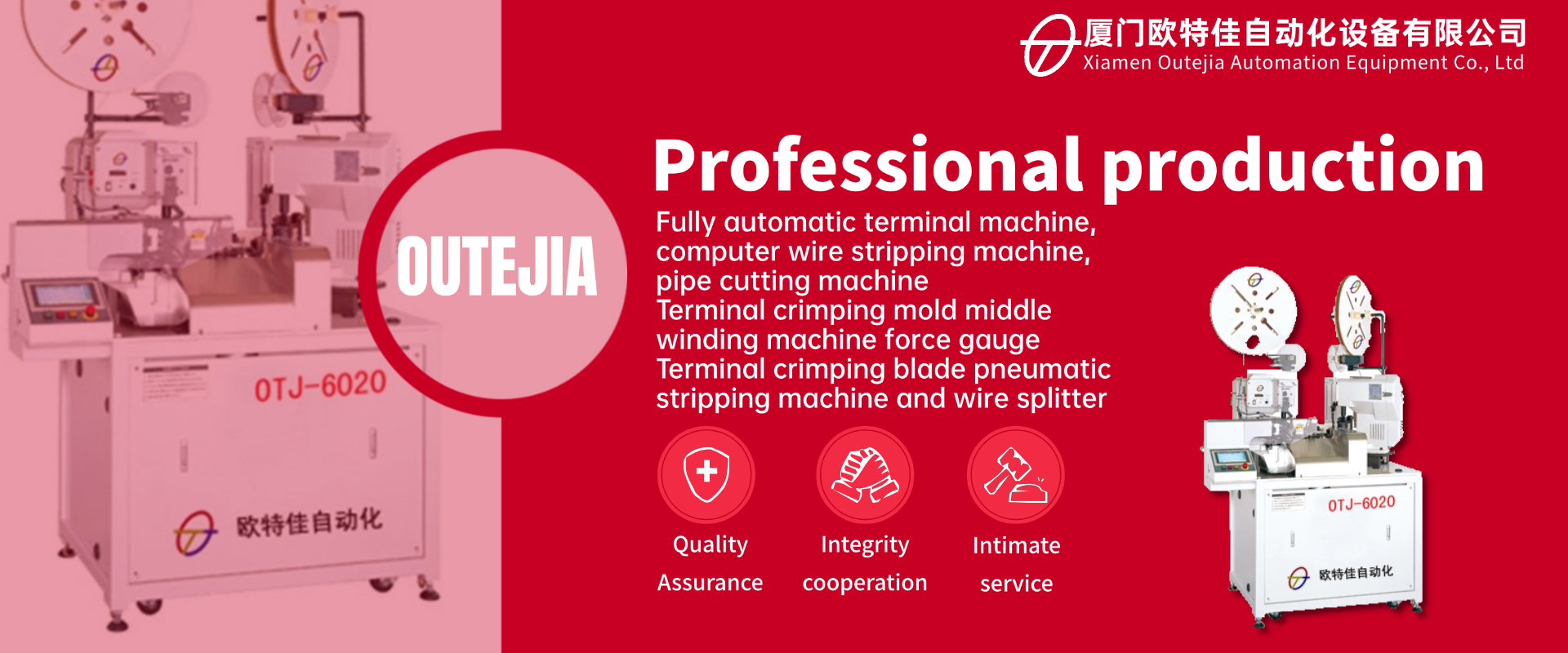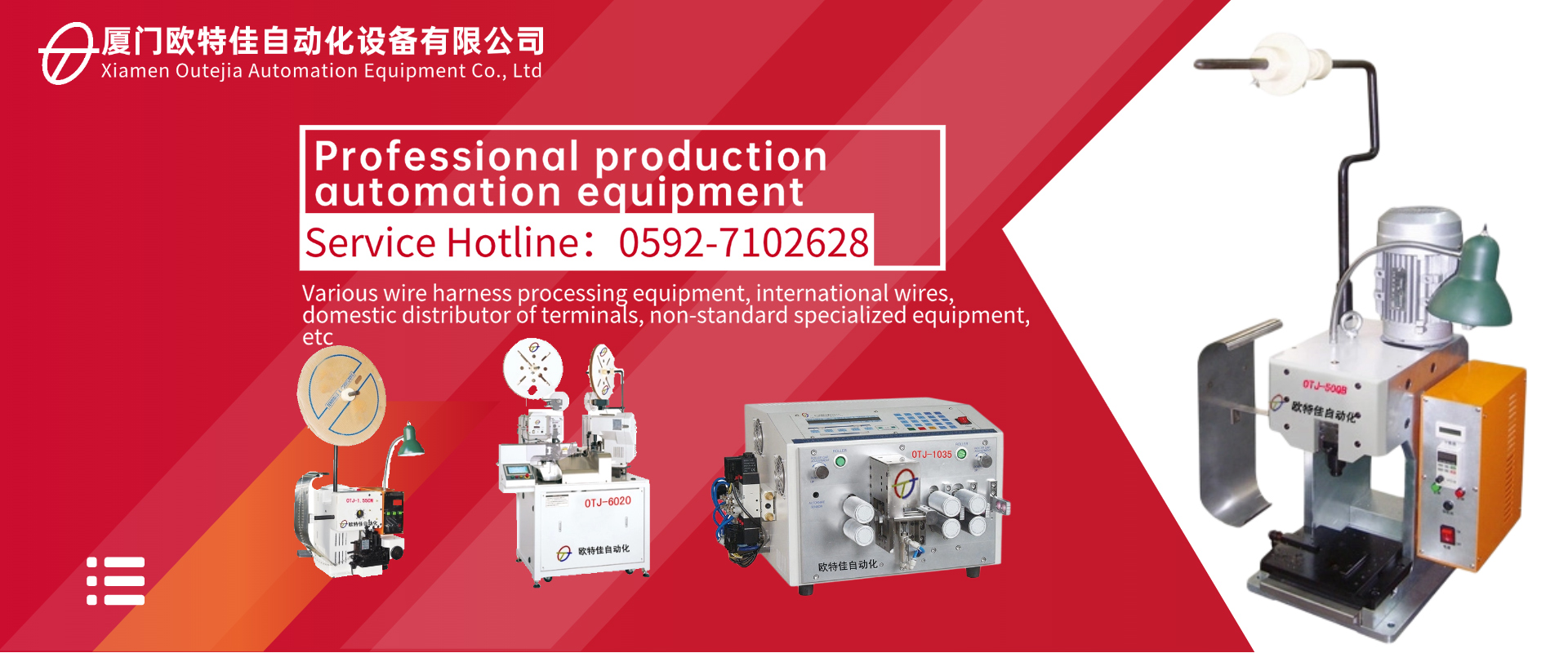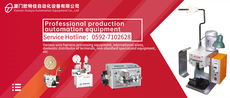 Xiamen Outejia Automation Equipment Co., Ltd. is a wholly-owned subsidiary of Xiamen Outejia Industry and Trade Co., Ltd. The company is located in the beautiful coastal city of Xiamen, Fujian Province. It is a high-tech enterprise specializing in the production of automation equipment, including various wire harness processing equipment, international wires, domestic general agents of terminals, non-standard special equipment, etc. The wire harness equipment is sourced from large state-owned military enterprises, and the enterprise has strong independent research and development capabilities. There are more than 10 intermediate level technical personnel from large state-owned enterprises who have long been committed to the research of wire harness equipment and processing technology. The companys main products include: fully automatic terminal crimping machines (single end, double end, one end crimping, one end tin dipping), fully automatic computer wire stripping machines, and high-speed terminal crimping machines. Pick up machines, pipe cutting machines, terminal crimping molds, etc, And undertake the design and processing of various cutting blades and terminal blades.