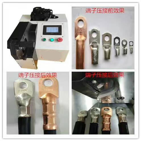 This machine adopts a unique internal hexagonal automatic retraction mechanism, which is driven by an imported PLC servo motor through deceleration to drive the connecting rod slider mechanism. Through our companys unique internal hexagonal automatic retraction mechanism, it can achieve crimping of 10-120 square terminals without changing molds. You can directly input the desired crimping wire specifications on the color touch screen for automatic crimping.